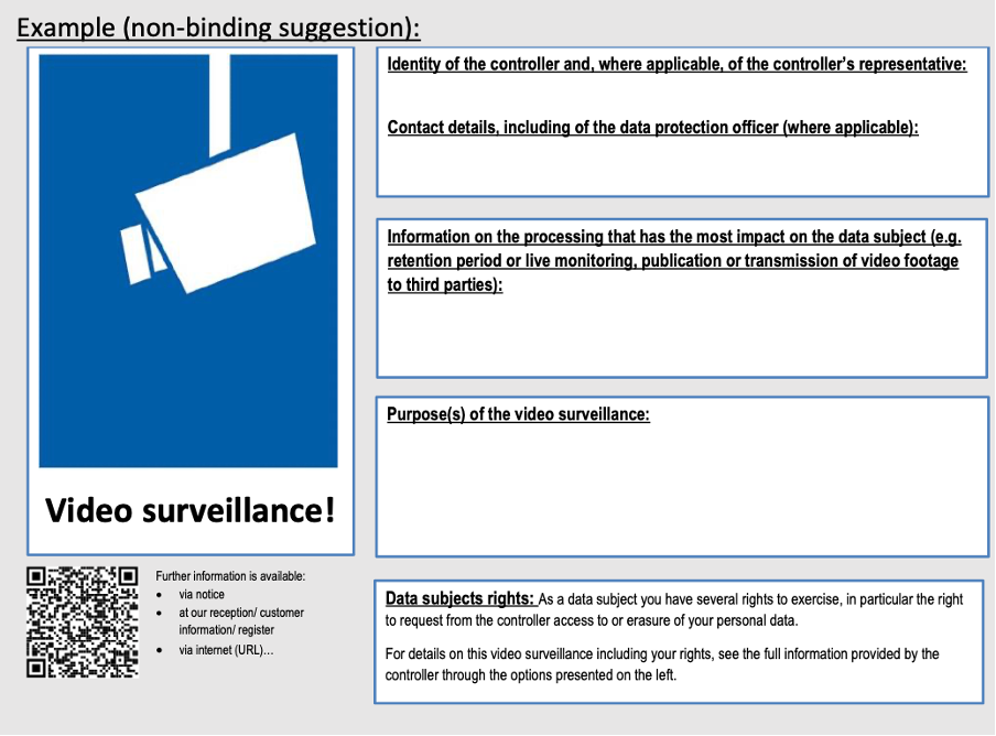 Articles 12 and 13 of the GDPR require the provision of information in a concise, transparent, and easily accessible form. All the data subjects should be clearly informed that video surveillance is taking place. The EDPB has set a very specific “layered approach” standard for this.